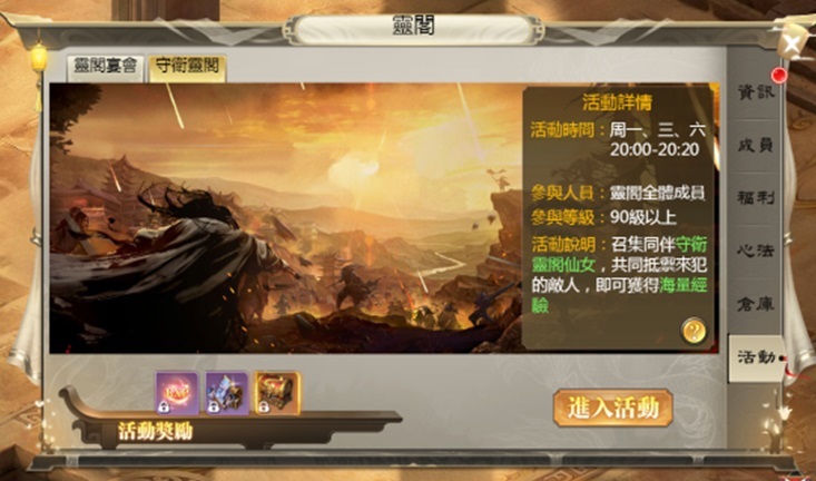 萬劍江湖傳》裏的靈閣,也不僅僅只有戰鬥。遊戲裏每天固定時間會在幫會領地開啟活動,作為每天靈閣成員的歡聚時間。